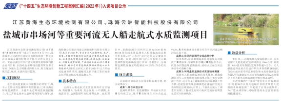 6月8日,黄海金控集团所属黄海检测公司关于盐城市串场河等重要河流无人船走航式水质监测项目成功入选由《中国环境报》组织编纂的《“十四五”生态环境创新工程案例汇编(2022年)》。《中国环境报》由国家生态环境部主管、中国环境报社主办,是全球唯一国家级环境保护报纸。此次汇编旨在推动生态环境工程领域技术创新、管理创新和服务创新,助力各地各行业深入打好污染防治攻坚战。
