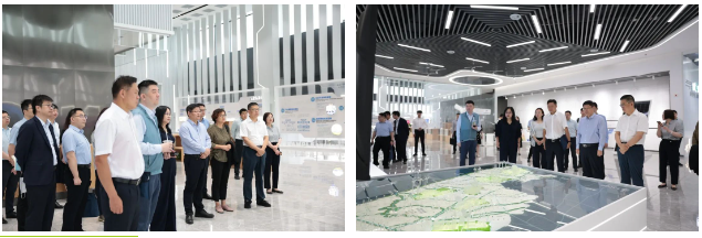 活动开始前,祁广亚带领专家学者以及企业老总一起参观了西伏河绿色低碳科创园展厅,通过观看盐城在绿色低碳发展方面的优势、举措及未来展望等相关视频和展陈,与会人员对于盐城绿色低碳发展概况有了更深入的了解。