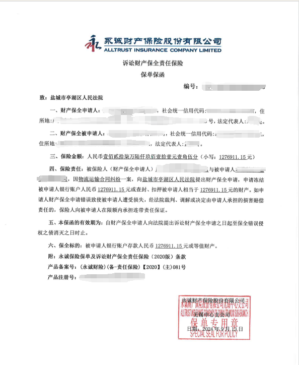 这张保单的成功开具,为涉诉双方当事人提供了“双保险”,不仅保证了保全申请人的合法权益,也维护了被申请人的正常生产经营秩序,代表了盐城市在 “保险+法律”服务模式上的创新。