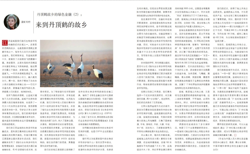 中国人民大学蓝虹教授执笔的长篇科普散文《丹顶鹤故乡的绿色金融》连载第二篇“来到丹顶鹤的故乡”在《金融博览》2月期发表。